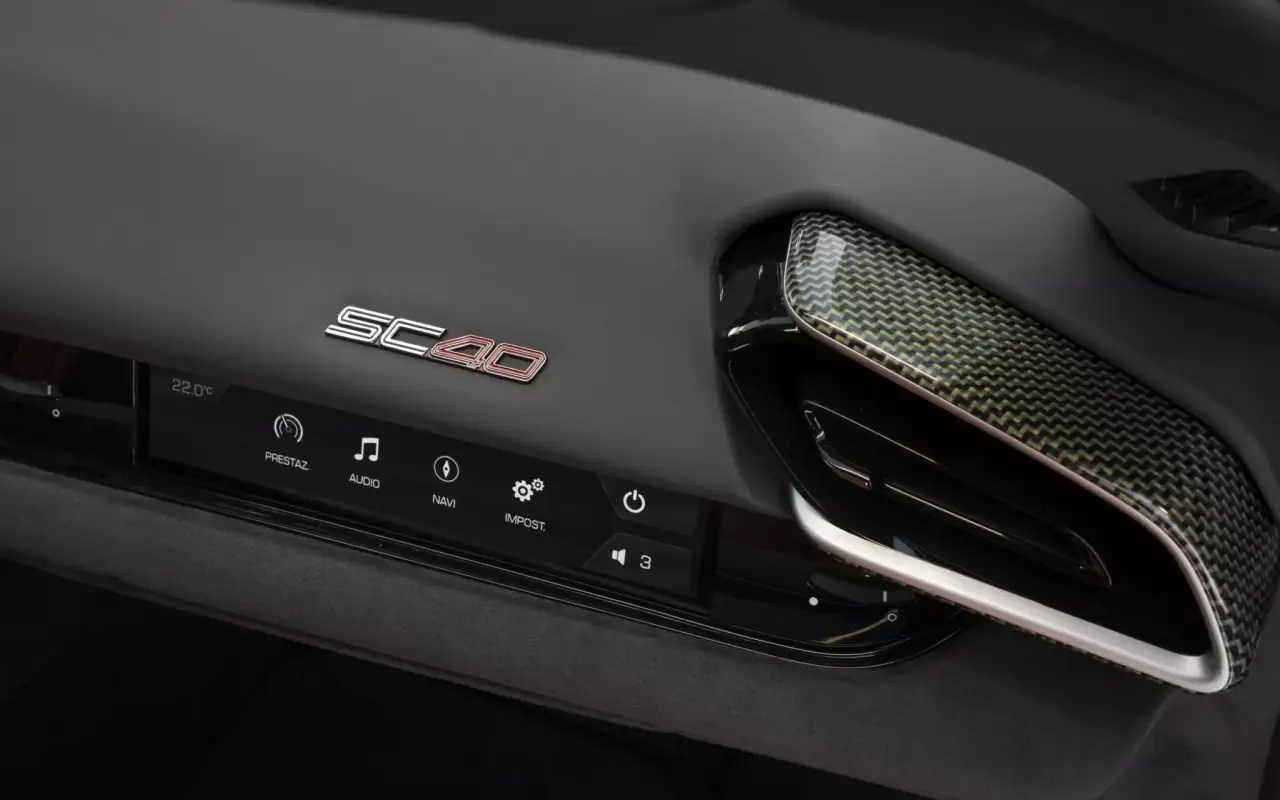 El nombre SC40 rinde homenaje al legendario Ferrari F40, presentado en 1987. Su diseño retoma las formas angulosas y musculosas del clásico superdeportivo, reinterpretadas con un lenguaje más moderno. Destacan sus proporciones adelantadas, el morro largo y bajo, y el alerón fijo en color Bianco SC40, que otorgan una silueta agresiva y aerodinámica.