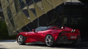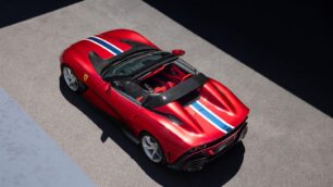 Uno de los elementos que llamará la atención de cualquiera que se acerque al SP51 es el Rosso Passionale, un nuevo color de triple capa desarrollado exclusivamente para este coche. Esta tonalidad confiere al coche un carácter elegante y autoritario, cuya personalidad se ve reforzada por la librea longitudinal blanca y azul inspirada en el legendario Ferrari 410 S de 1955 pero que, en esta interpretación, recorre el coche hasta en su interior.