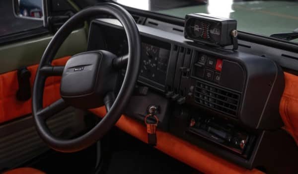 El color de la carrocería de color caqui se ha desarrollado con BASF R-M, mientras que los revestimientos interiores de color naranja han sido tapizados en Alcantara. Todas las partes mecánicas se han revisado, excluyendo el motor de gasolina que se ha reemplazado por un motor eléctrico desarrollado en colaboración con Newtron Group.