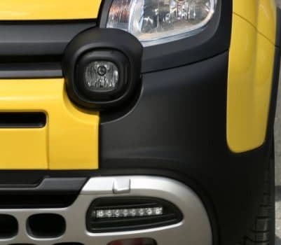 Ahora con esta versión el Panda muestra un frontal más robusto con placa protectora inferior, por otra parte destaca sus ganchos para el remolque en color rojo, pero sin duda lo que más mejora su aspecto son sus faros antiniebla integrados y las luces diurnas DRL en LED.
