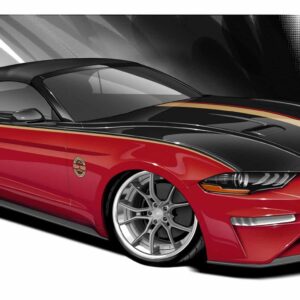 El Ford Mustang Convertible de Goodguys Rod & Custom Association no es más discreto que el anterior. Se basa en el Mustang EcoBoost 2020 y presenta un motor de cuatro cilindros de 2.3 litros y alto rendimiento que se combina con una transmisión automática de diez velocidades. Luce un trabajo de pintura tricolor personalizado, faldones laterales y un difusor trasero.