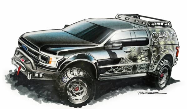 Por último, el Ford F-150 XLT SuperCrew FX4 de J Robert Marketing and Attitude Performance hace gala del patriotismo americano con una decoración dedicadaal Black Rifle Coffee Company. Cuenta con un kit de elevación de la suspensión, amortiguadores de tipo coilover y llantas de 20 pulgadas con neumáticos Interco SS M-16.