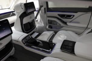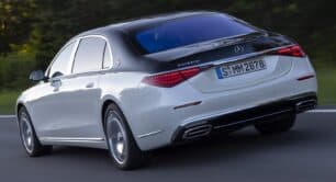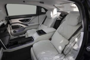 Gracias al equipamiento de serie con asientos Executive y el paquete chófer, la parte trasera se convierte en un confortable puesto de trabajo y lugar de reposo. La Clase S Mercedes-Maybach (longitud/anchura/altura: 5.469/1.921/1.510 milímetros) es una berlina clásica de tres volúmenes. Las entregas comenzarán en Europa en la segunda mitad del año.