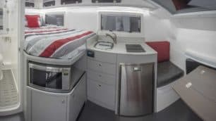 Para dar forma a nuestra futura casa sobre ruedas podemos elegir entre un Dodge RAM 5500 o un Ford F550, dos pick-up que podemos encontrar con frecuencia en el mercado americano. Cada uno de ellos añade en la parte trasera una gran caja de fibra de vidrio que ha sido diseñada para aprovechar al máximo el espacio. Con una capacidad de dos personas equipa desde una cocina, un baño, una cama de matrimonio y multitud de compartimentos.