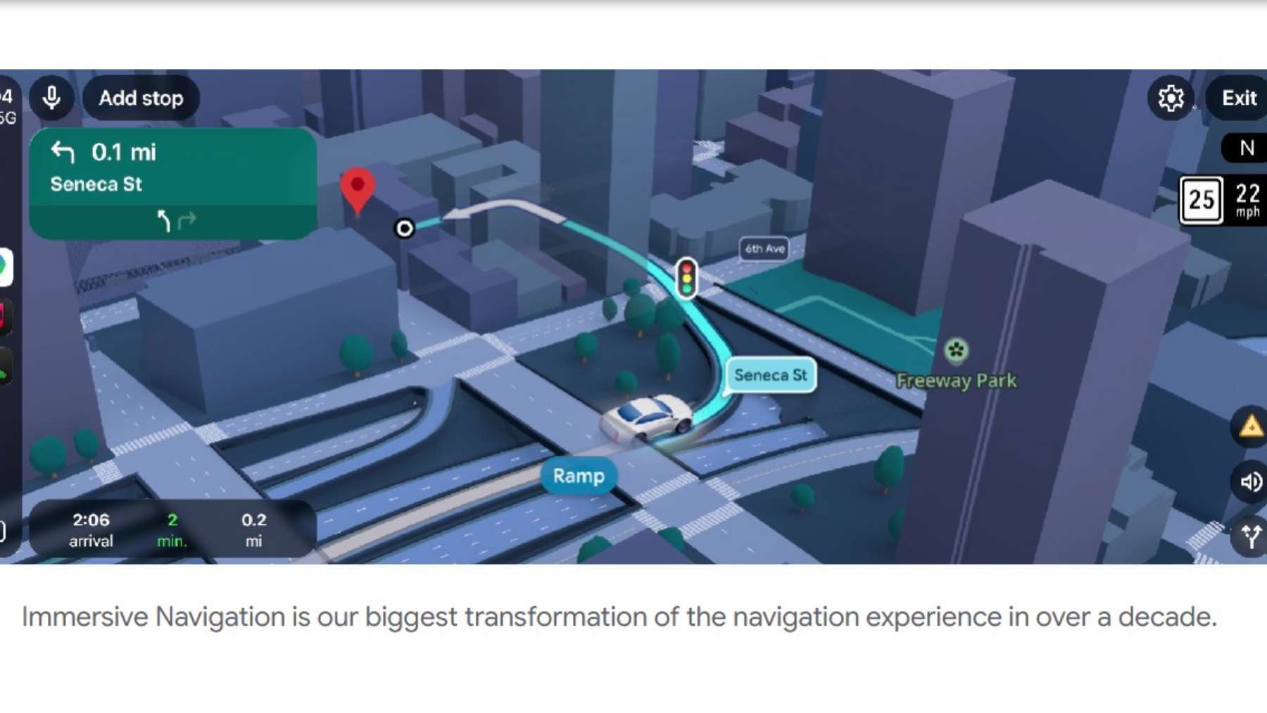La función que más llama la atención es el Google Immersive Navigation, una manera distinta de mostrar el camino. En lugar de limitarse al clásico mapa plano, ahora el recorrido aparece dentro de un entorno 3D mucho más detallado.