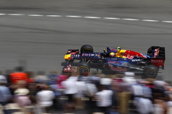 Hasta la vuelta 30, que empezaron las paradas en boxes, la carrera estuvo tranquila sin grandes sobresaltos. Webber comandaba con Rosberg, Hamilton, Alonso y Massa algunos segundos por detrás. Durante la primera y única pasada por los garajes, Fernando Alonso le ganó la posición a Lewis Hamilton y Sebastian Vettel se puso en primera posición debido a que había comenzado la carrera con el compuesto más duro disponible, con la idea de hacer un único pit stop.