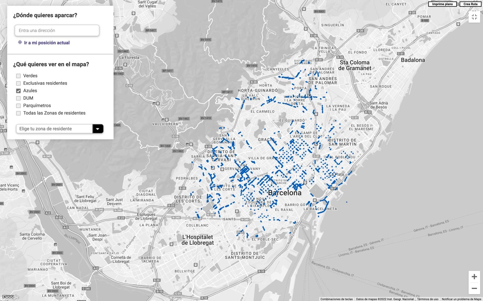 - Reservadas en exclusiva para los residentes: funcionan todos los días, incluidos festivos, de 8:00 a 20:00 en casco antiguo de Gràcia, casco antiguo de Sarriá, Camp de l’Arpa, El Carmel y distrito de Ciutat Vella, excepto Barceloneta; y las 24 horas del día en la Barceloneta y el Born.