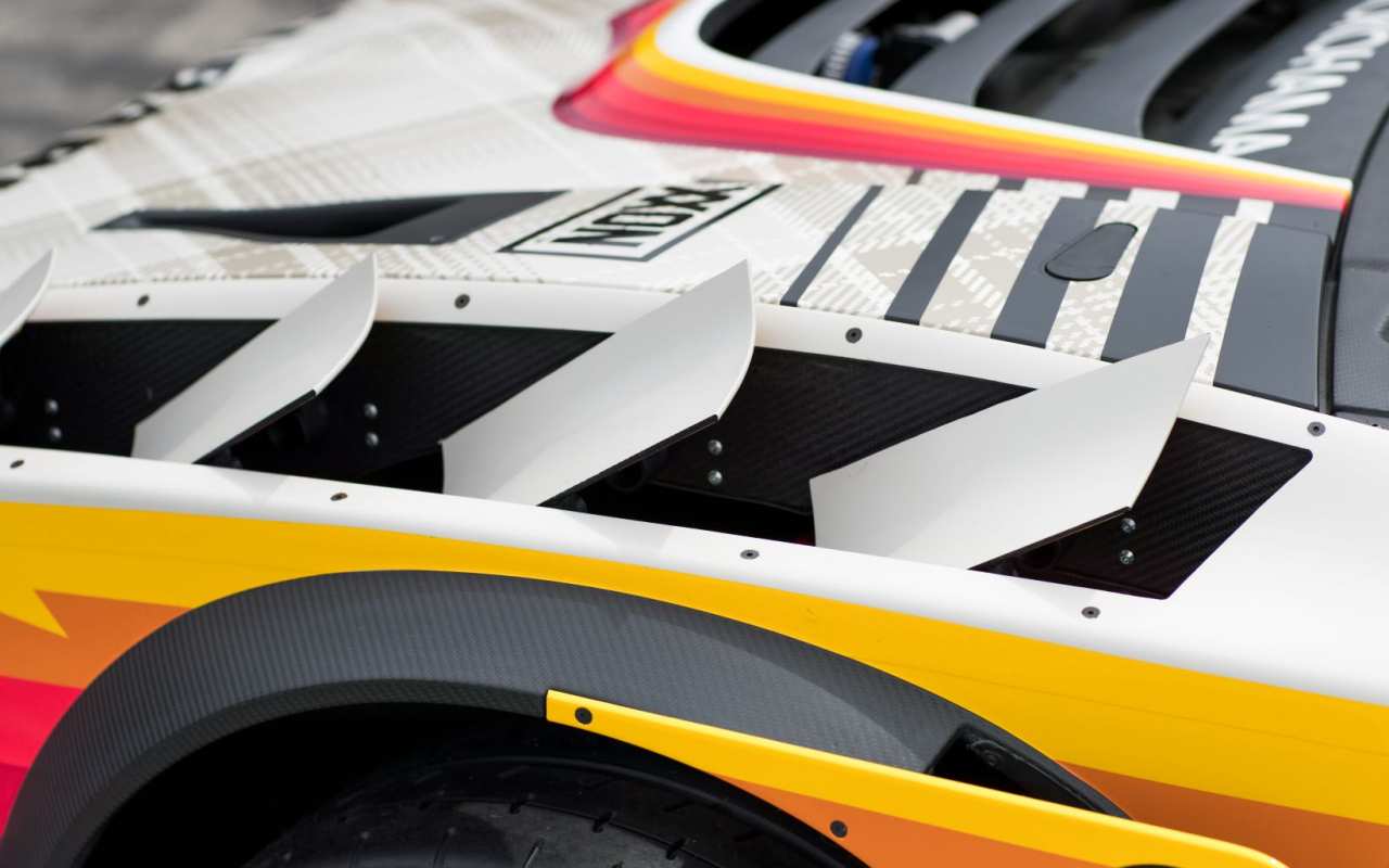 Los alerones y lamas delanteras se ajustan en tiempo real para modificar el comportamiento del coche durante los saltos o en curvas más extremas. En la parte trasera, dos alerones intercambiables —uno de alta carga y otro de menor resistencia— permiten ajustar la estabilidad según la maniobra, incluso alterando el ángulo de ataque durante el vuelo.