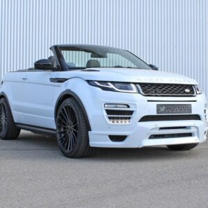 Aunque no es el primer Evoque Convertible que vemos transformado -el primer preparador fue el suizo DS Automotive-, el kit para la carrocería de Hamann incluye un parachoques delantero totalmente reformado, luces LED diurnas, faldones laterales, un alerón trasero y unos tubos de escape exclusivos en posición central para parecer sacados del mismísimo Lamborghini Aventador. Además, encontramos un kit para hacer de nuestro Evoque hasta 30 milímetros más bajo, por supuesto, todo ello acompañado de unas nuevas llantas “Made In Hamann” de 22 pulgadas con diseño de 18 radios en negro y neumáticos especialmente diseñados para calzar al Range Rover.
