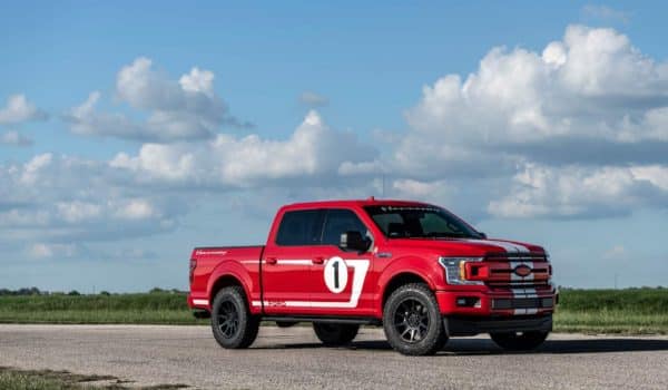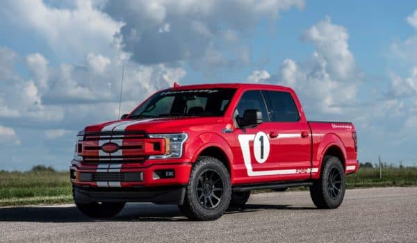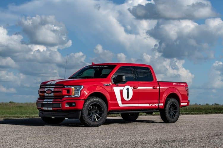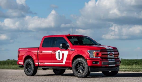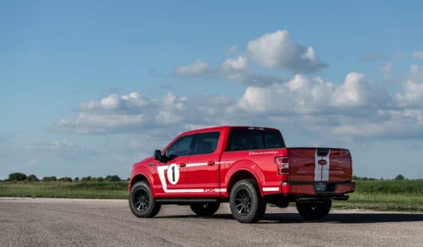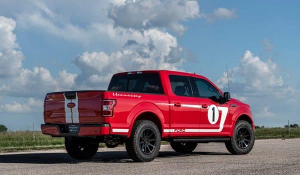 Sorprende lo bien que se adapta la estética de los Heritage Edition en el F-150, las características rayas blancas y el color rojo de la carrocería con la firma de Hennessey dotando al exterior de una mirada más agresiva y única. Además de esta decoración, también incluye el logotipo de Hennessey en el frontal, una placa identificativa en el salpicadero y los reposacabezas bordados. Además, cada cliente podrá elegir entre dos versiones, Sport Kit Upgrade y Off-Road Upgrade.