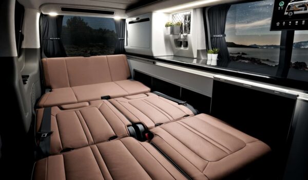 Los asientos delanteros, tipo butaca giran eléctricamente 180 grados para crear una zona de estar amplia y funcional. Detrás, los asientos se pliegan con solo pulsar un botón y convierten el espacio en una cómoda cama doble.