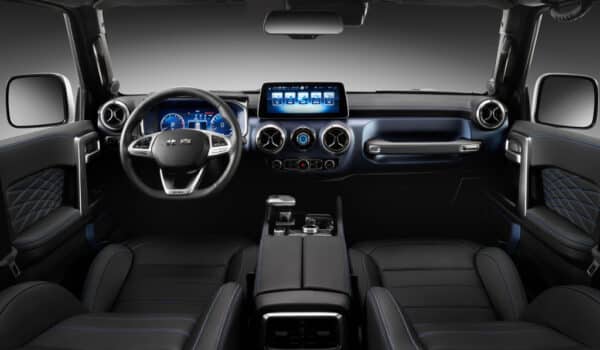 Es interesante que además de la reductora, el recién llegado contará con doble diferencial delantero y trasero con bloqueo electrónico. Se indica en la nota de prensa una pendiente máxima del 60%, una ángulo de ataque de 37º, un ángulo de salida de 31º y una altura libre al suelo de 220mm. Nada mal para un «chino».