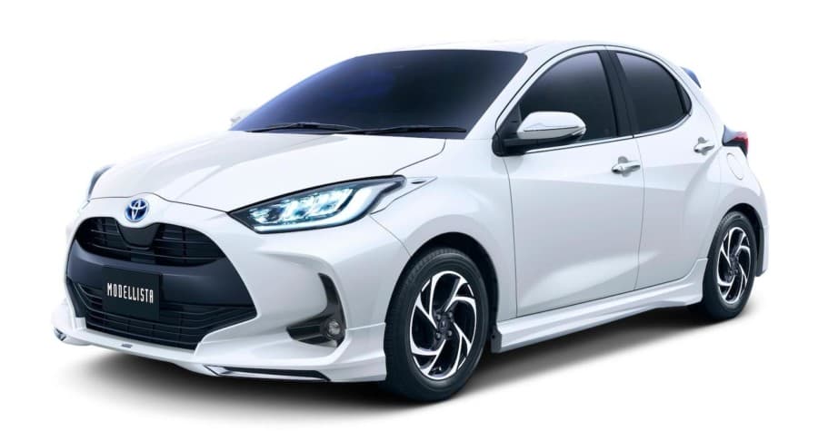 Aunque el aspecto de ambos no es lo que esperábamos, seguro que las GR Parts de Toyota Racing Development y el kit de carrocería de Modellista tienen su público. El paquete aerodinámico de TRD consta de un alerón delantero, faldones laterales y un alerón lateral trasero, todos ellos con inserciones rojas. También vemos entradas de aire en los pasos de rueda, llantas de 16″ y un faldón lateral deportivo.