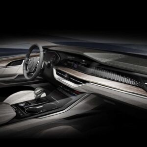Publicado como un boceto, se pueden apreciar cambios significativos en el diseño del salpicadero, con una reducción notable de botones, la presencia de una pantalla táctil de 12,3 pulgadas para el sistema multimedia, un nuevo climatizador bizona y una mejora del atractivo visual y de los materiales empleados, tanto de los tapizados como de las molduras.