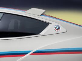 La conexión más obvia con el modelo clásico está en la zaga. Allí BMW M ha instalado un tremendo alerón al más puro estilo del icónico Batimóvil. Con un logotipo M Power de estilo retro, el alerón es tan ancho como el 3.0 CSL. Rematan los costados cerrados, al igual que el original hace 50 años. Se complementa con un alerón montado en el techo similar al del E9.