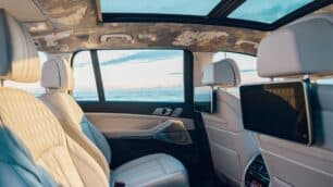 Con eso en mente, el interior está bañado en este tejido especial, con un patrón intrincado. El material adorna la consola central, el salpicadero y el techo del X7, creando una sensación a mi parecer un tanto extraña y sobrecargada. Se remata con detalles de color dorado en capas y está hecho completamente a mano ¿A vosotros qué os parece?