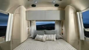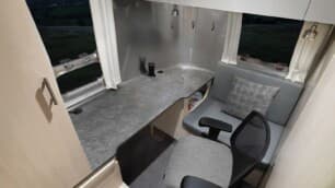 Airstream dice que su último trabajo es fruto de los comentarios de muchos propietarios que trabajan en la carretera. En base a ello podemos encontrar un escritorio, armarios y otros espacios de almacenamiento en el lugar donde antes encontrábamos uno de los dormitorios. Incluso hay varios ventanales para disfrutar del paisaje.