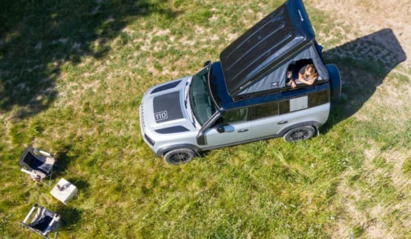 La tienda de campaña de Autohome para el Defender 110 ofrece fácil acceso desde cualquier lado del vehículo y capacidad para dos adultos. Entre sus comodidades cabe destacar un colchón de algodón de lujo en tamaño completo, almohadas, una luz LED interior y una red de almacenamiento.