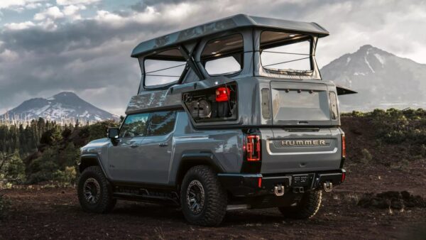 GMC y EarthCruiser anunciaron a fines de marzo que trabajarían juntos en el desarrollo de una autocaravana sobre la base del Hummer EV, y este es el resultado. EarthCruiser ha convertido el GMC Hummer EV en un vehículo recreativo apto para pasar siete días de acampada totalmente desconectados de la red. Brinda espacio suficiente para alojar a dos personas.