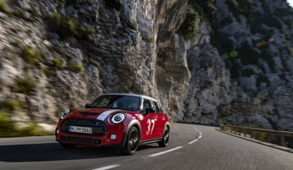 Otras características inconfundibles en el exterior son los faros LED y las luces traseras con el diseño de la Union Jack, pegatinas con la inscripción «Paddy Hopkirk Monte Carlo» y una franja blanca en el capó del lado del conductor, que como el portón trasero, lleva la firma del ganador del «Monte» de 1964.