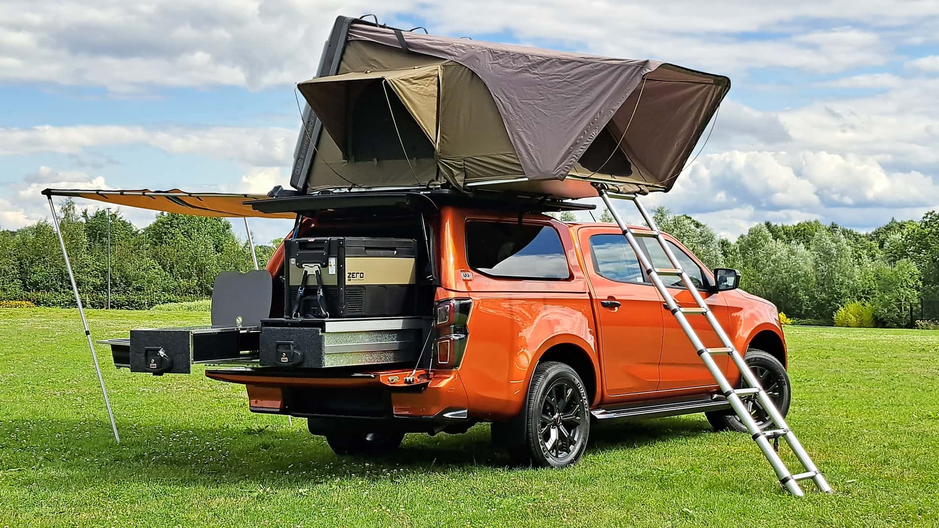 El equipamiento adicional para la aventura incluye una carpa sobre el techo y un toldo extensible en un color similar al de la carrocería. La parte trasera se ha cerrado con un hard top y cuenta con cajones y un sistema de cocina con vitrocerámica, fregadero, zona de preparación y nevera. Los accesorios de la Expedition Edition estarán disponibles en los concesionarios Isuzu del Reino Unido.