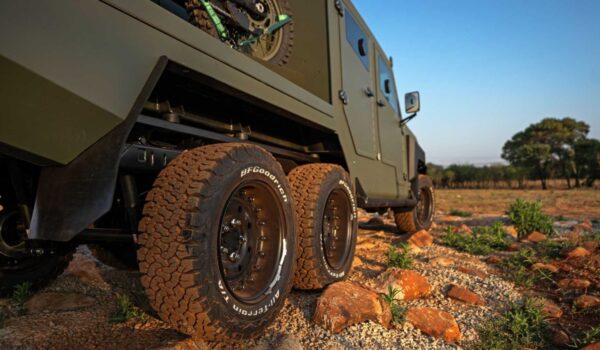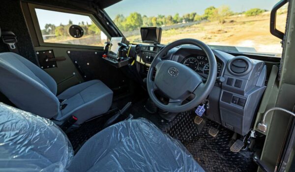 Tomando como base un Land Cruiser J79, SVI Engineering ha añadido, en primer lugar, un tercer eje. Además, cuenta con un segundo eje modificado para alinear las ruedas con las delanteras, una «anomalía» presente en el J79, según revela el experto en vehículos blindados. Para una mejor potencia de frenada, los dos ejes traseros se benefician de frenos de disco.