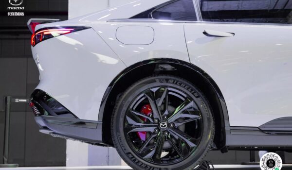 Bautizado como Mazda6e Sport Edition, la firma nipona no ha confirmado si este paquete más deportivo llegará a Europa, pero no os vamos a negar que nos encantaría que lo hiciese. El sedán destaca por los elementos en negro brillante de su carrocería, incluidas las llantas de aleación de 19 pulgadas. Tras ellas se esconde un conjunto de frenos con pinzas en color rojo a contraste.