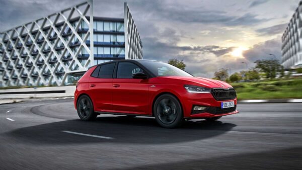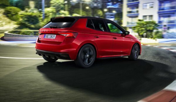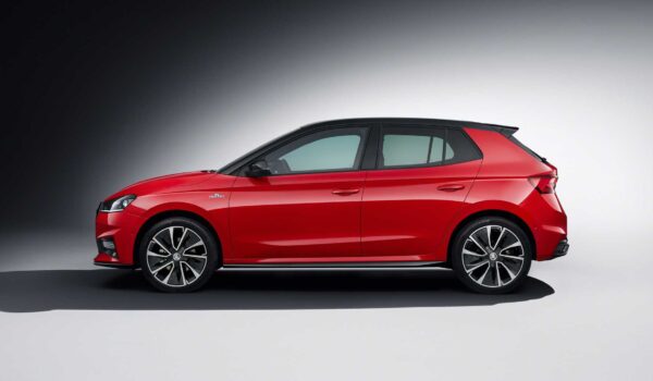 Las imágenes oficiales muestran el hatchback subcompacto con una carrocería bitono. Los protagonistas son el rojo y el negro. Esta última tonalidad se aprecia en el techo, las cubiertas de los espejos laterales, la parrilla frontal y el pilar A. El Fabia Monte Carlo también tiene faros y luces traseras oscurecidos. Van en combinación con los faldones delantero y trasero negros.