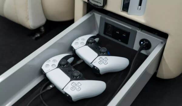 Estas incluyen diversas funcionalidades como Apple TV, conexiones HDMI y USB e incluso una PlayStation 5. Para disfrutar de todo ello, el equipo multimedia va acompañado de conexión Wi-Fi y de un potente sistema de sonido. Ponen la guinda del pastel los tapizados en gamuza, las molduras de madera, el enorme techo de cristal panorámico y dos frigoríficos para bebidas.