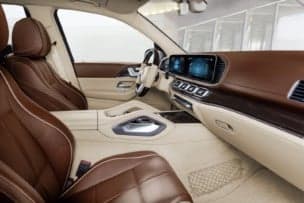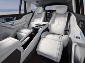El equipamiento del Mercedes-Maybach GLS 600 4MATIC es muy lujoso, incluso en la versión de serie. Los dos asientos laterales del banco trasero pueden convertirse en asientos de reposo con ajuste eléctrico. El tapizado y el revestimiento del tablero de instrumentos son de fina napa en la versión de serie.