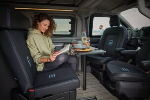 La parte «camper», desarrollada por Westfalia, incluye doble puerta deslizante, techo elevable con cama doble más amplia, asientos delanteros giratorios, banqueta trasera convertible en cama (con calefacción opcional), cocina completa con una placa de cocción y un fregadero integrado, nevera integrada de 33 litros, depósito de aguas limpias, mesa plegable…