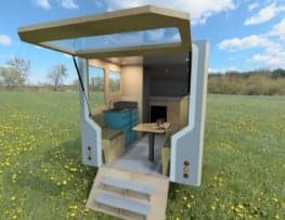 Sin embargo, siempre hay algunos que van más allá, como es el caso de la compañía holandesa Haaks, que ha creado ha creado una de las últimas soluciones de vida móvil que desdibuja la línea entre autocaravanas y casas pequeñas. Su camper Opperland revestida en madera no tiene porqué permanecer anclada al vehículo.