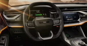 La consola en sí presenta un patrón de red que rodea un borde negro piano. Según Jeep, el equipamiento contempla un techo corredizo panorámico de doble panel de serie y un sistema de sonido McIntosh de 19 altavoces, amplificador de 1.200 vatios y subwoofer de 12 pulgadas en opción. Tampoco faltan una iluminación ambiental de 64 colores seleccionables.