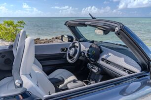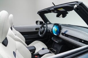 Si hablamos de espacio, sigue siendo limitado. El maletero ofrece 215 litros de capacidad con la capota puesta. Esto son cinco litros más que la versión con techo rígido. Sin embargo, con el techo abierto, la capacidad se reduce a 160 litros. Para optimizar el flujo de aire en el modelo, MINI ha añadido un deflector de viento entre los asientos delanteros y traseros.