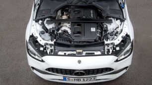 La misma tecnología del Mercedes-AMG SL 43 de cuatro cilindros se ha implementado en el nuevo sedán, aunque en el Clase C genera una potencia significativamente mayor. El motor M139l, un cuatro en línea de 2.0 litros equipado con sistema micro híbrido de 48V, permite a los ingenieros de AMG adaptar una tecnología de turbocompresor eléctrico similar a la de la F1.