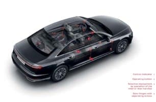 Cuando esto sucede, se envía aire fresco al interior durante un tiempo limitado. Otro equipo vital reservado para el A8 L Security es el sistema de salida de emergencia para aquellos casos en los que las puertas no se puedan abrir. Mediante un sistema pirotécnico, una explosión elimina las conexiones entre el chasis y la puerta.