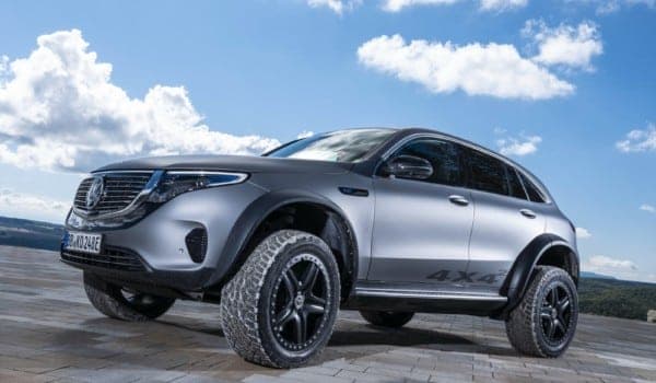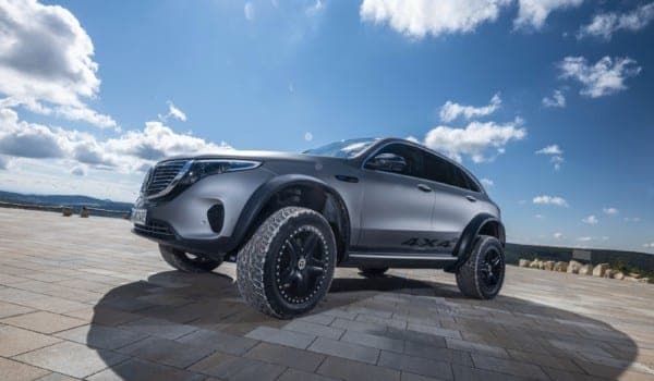 Estéticamente muy similar al EQC de producción, esta versión de estudio cuenta con una suspensión modificada que eleva la carrocería del SUV en 200 mm y añade un eje delantero multibrazo de cuatro brazos. Alcanza los 293 mm de altura libre al suelo, 153 mm más que un EQC estándar y 58 mm más que un Clase G.