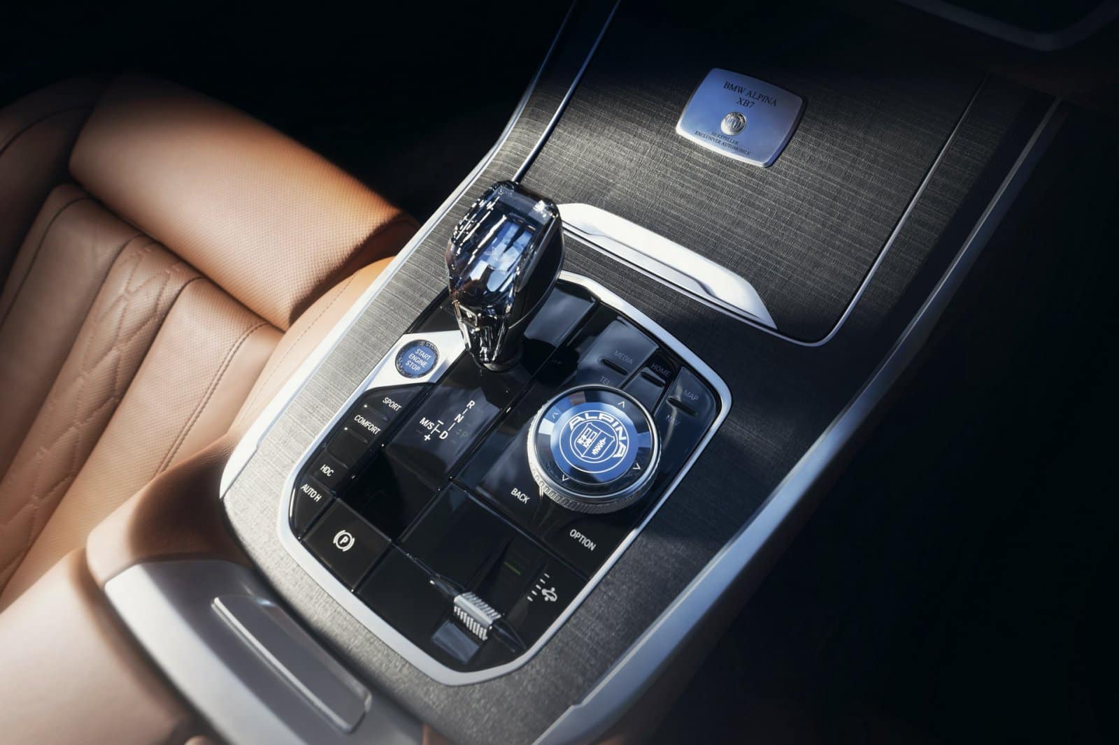 Las nuevas opciones de acabado incluyen molduras en Alpina Myrtle Luxury Wood, Piano lacado y Natural Walnut Anthracite. El volante deportivo con la marca Alpina está acabado a mano en cuero Lavalina con costuras en azul/verde. Otros cambios incluyen un selector de cambios con iluminación azul, una placa especial en la consola central y umbrales de puertas iluminados.