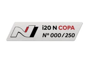 Lo cierto es que no encontrarás más rendimiento o una estética más agresiva. Sencillamente, tenemos una placa numerada en aluminio cepillado de 65 x 16 mm de tamaño, situada en el interior, sobre la consola central. Sobre cada una de las aletas delanteras, se sitúan unos anagramas realizados sobre una base de aluminio cepillado también, de 125 x 21 mm que identifican esta versión.