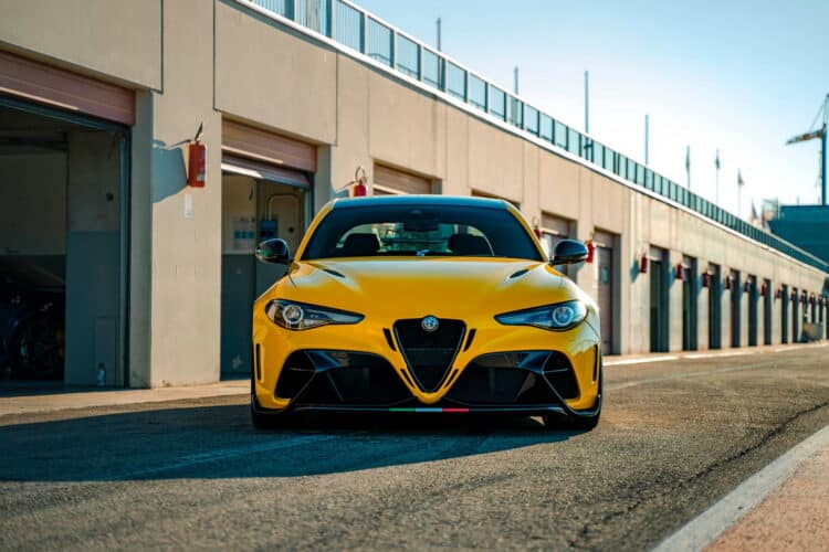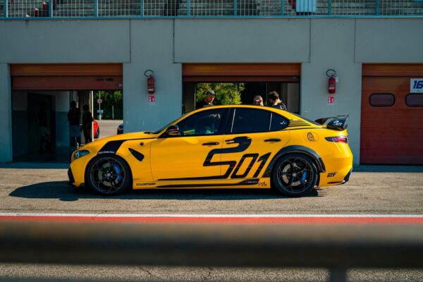 El ejemplar que ves en las imágenes tomadas por Aureus Car Spotlight es la primera unidad terminada. Se ha estrenado en el Autodromo Varano de Italia con una librea muy especial, a la par que llamativa. Eso sí, el paquete no es precisamente barato. Hablamos de 9.093 euros para un Giulia Quadrifoglio.