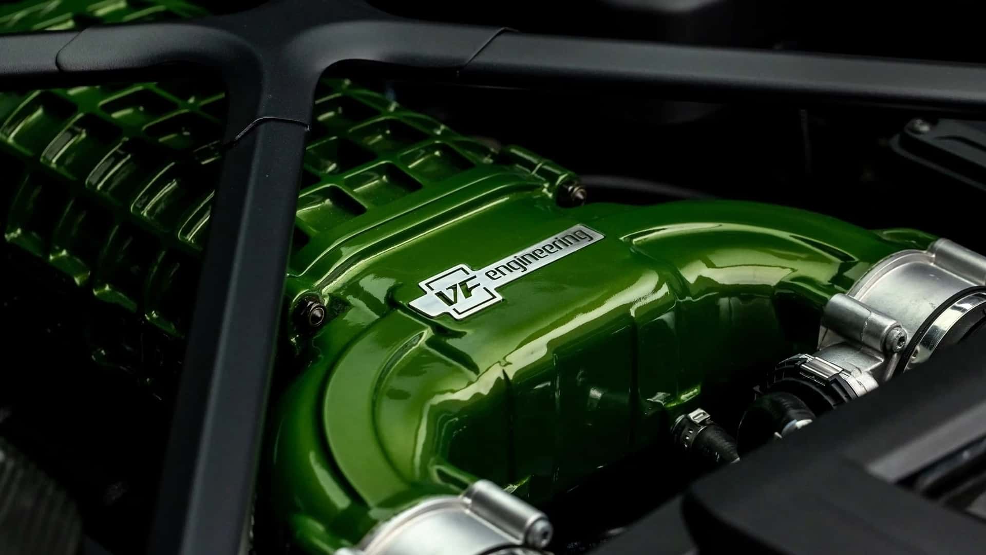 Las presiones de impulso son inmediatas y consistentes en todo el rango de revoluciones, según la compañía. Y si quieres más, VF Engineering puede acompañar tu R8 de una apariencia más llamativa. Junto a diferentes elementos en fibra de carbono y unas llantas de generoso tamaño, el especialista ofrece la posibilidad de pintar la carrocería en este llamativo color verde.