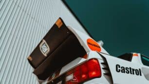 La carrocería de este BMW M3 E30 es sin duda alguno uno de sus puntos fuertes. El modelo presume de un kit de carrocería ensanchado LTO, la librea original de Tic Tac -incluida la eliminación del logotipo del lateral del automóvil- y un alerón de proporciones bíblicas sobre la tapa del maletero.