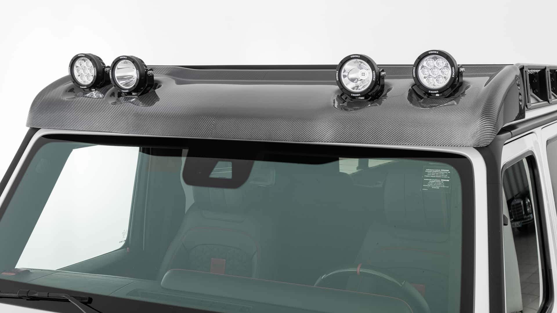 El BRBUS XLP 900 6×6 Superblack es aún mejor. Equipa un motor V8 de 4.5 litros impulsado con un par de turbocompresores de alto rendimiento. Cuenta con un diámetro de cilindro ampliado, pistones forjados y bielas de alto rendimiento, al igual que el BRABUS P900 Rocket. También cuenta con un sistema de admisión ram-air integrado en la parrilla de carbono.