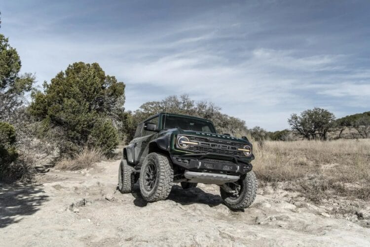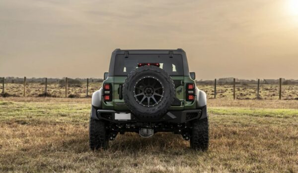 Basta un simple vistazo para ver que es una auténtica bestia 4×4. Recordemos que, de serie, el Ford Bronco Raptor cuenta bajo el capó con un motor V6 EcoBoost de 3.0 litros con doble turbocompresor. Genera 424 CV (312 kW) de potencia y 596 Nm de par máximo para plantar cara al Jeep Wrangler Rubicon 392. Adicionalmente, el Bronco Raptor tiene mejoras técnicas significativas.