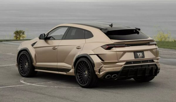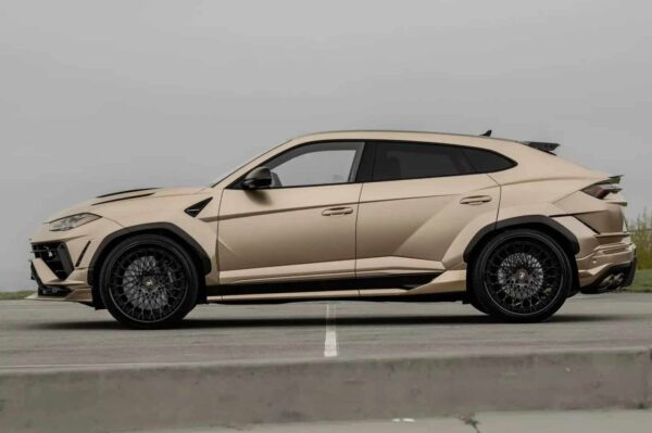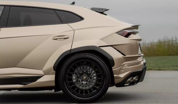 A estos se suman pasos de rueda ensanchados en 120 mm, faldones laterales y un alerón sobre el techo. También es novedad el prominente y agresivo paragolpes posterior, que integra un difusor de fibra de carbono (o el material elegido). Rematan el conjunto las desmesuradas llantas de aleación ligera de de 24 pulgadas firmadas por Forgiato. Calzan neumáticos deportivos.