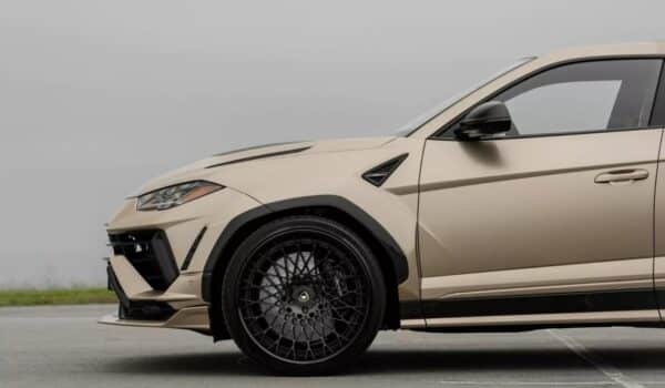 El Lamborghini Urus del especialista luce una particular pintura exterior, a contraste con piezas en fibra de carbono, fibra de carbono forjada o plástico reforzado con fibra. Las ópticas se han oscurecido para darle un toque más deportivo, al tiempo que el capó muestra nuevos elementos. El paquete Vision 2.0 también incluye una fascia delantera revisada con un divisor más llamativo.