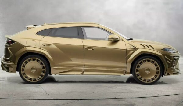 El Lamborghini Urus de Mansory luce un curioso color dorado bautizado como Bronzo Zenas. Las ópticas se han oscurecido para darle un toque más siniestro si cabe. La fibra de carbono forjada está presente en el capó, los paragolpes, las entradas de aire, las taloneras y faldones laterales, aunque en esta ocasión se han pintado del mismo color de la carrocería.