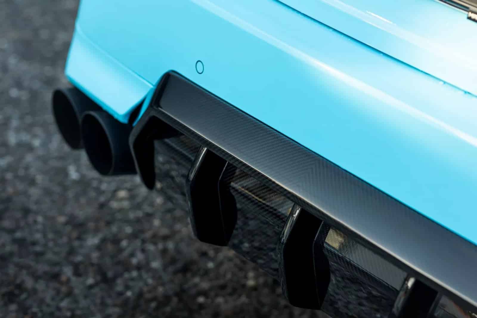 Con un llamativo color azul turquesa en su exterior, el MH2 500 se complementa con múltiples elementos en color negro y franjas en la carrocería en esta misma tonalidad. La altura se ha reducido en 30 mm gracias a los amortiguadores KW Variant 3 con ajustes de rebote y compresión. Tampoco faltan unos nuevos frenos mejorados y llantas forjadas de 20 pulgadas en color blanco.