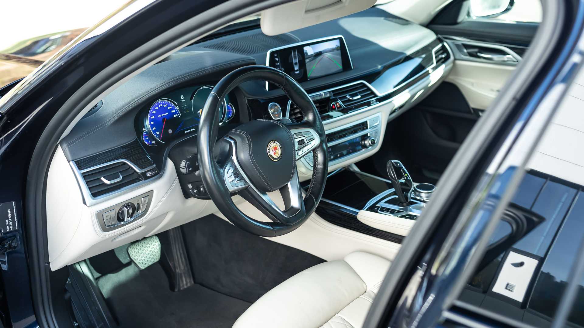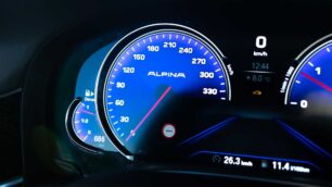 Para acercarlo al suelo, la suspensión neumática se ha bajado 20-30 mm y se han agregado espaciadores H&R de 15 mm. En el interior destacan la tapicería de cuero blanco, un grupo de instrumentos Alpina y una insignia de Manhart en el volante. Hay más elementos disponibles en opción, como el forro del techo Starlight.