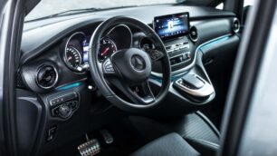 Tampoco faltan una iluminación LED mejorada, puntas de escape cuádruples en la zaga, nuevos muelle firmados por H&R que rebajan la altura de la carrocería en 25 mm y unas llantas de aleación del mercado de accesorios. Lucen un acabado negro y se ofrecen en un tamaño de 20 pulgadas. Desde luego, a falta de tener una Clase V firmada por AMG en el mercado, esta es una gran opción.